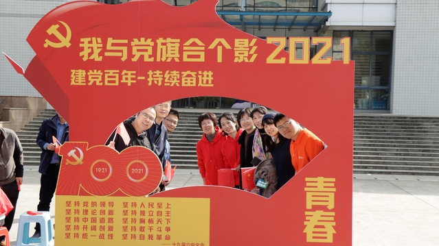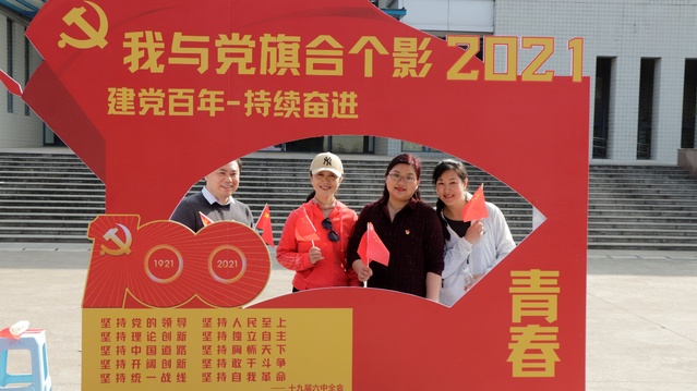 第6个打卡点宣传牌内容为:“2021—建党100周年 持续奋进。一百年来,红船承载着人民的重托、民族的希望,穿过惊涛骇浪,成为领航中国行稳致远的巍巍巨轮。奋斗百年路,启航新征程。将最后一个打卡点设在青春剧场,表明经历了第一个百年的中国共产党正处于青春年华。中国共产党将团结带领中国人民踏上新的历史征程,踏上实现第二个百年奋斗目标的新的赶考之路。”