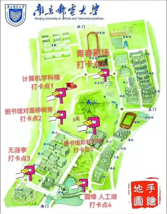 活动路线平面图(手绘图来源:南邮融媒体中心)