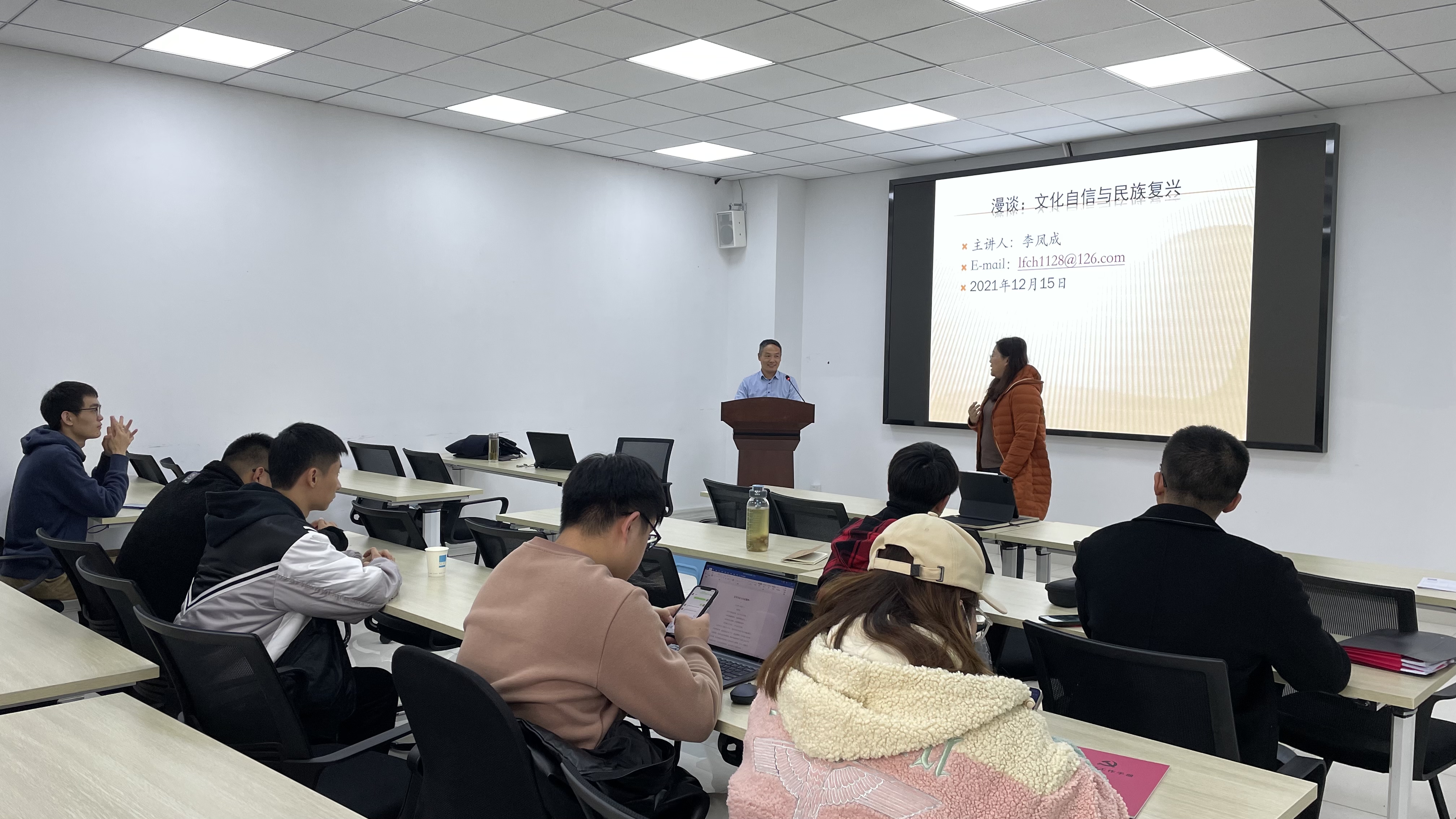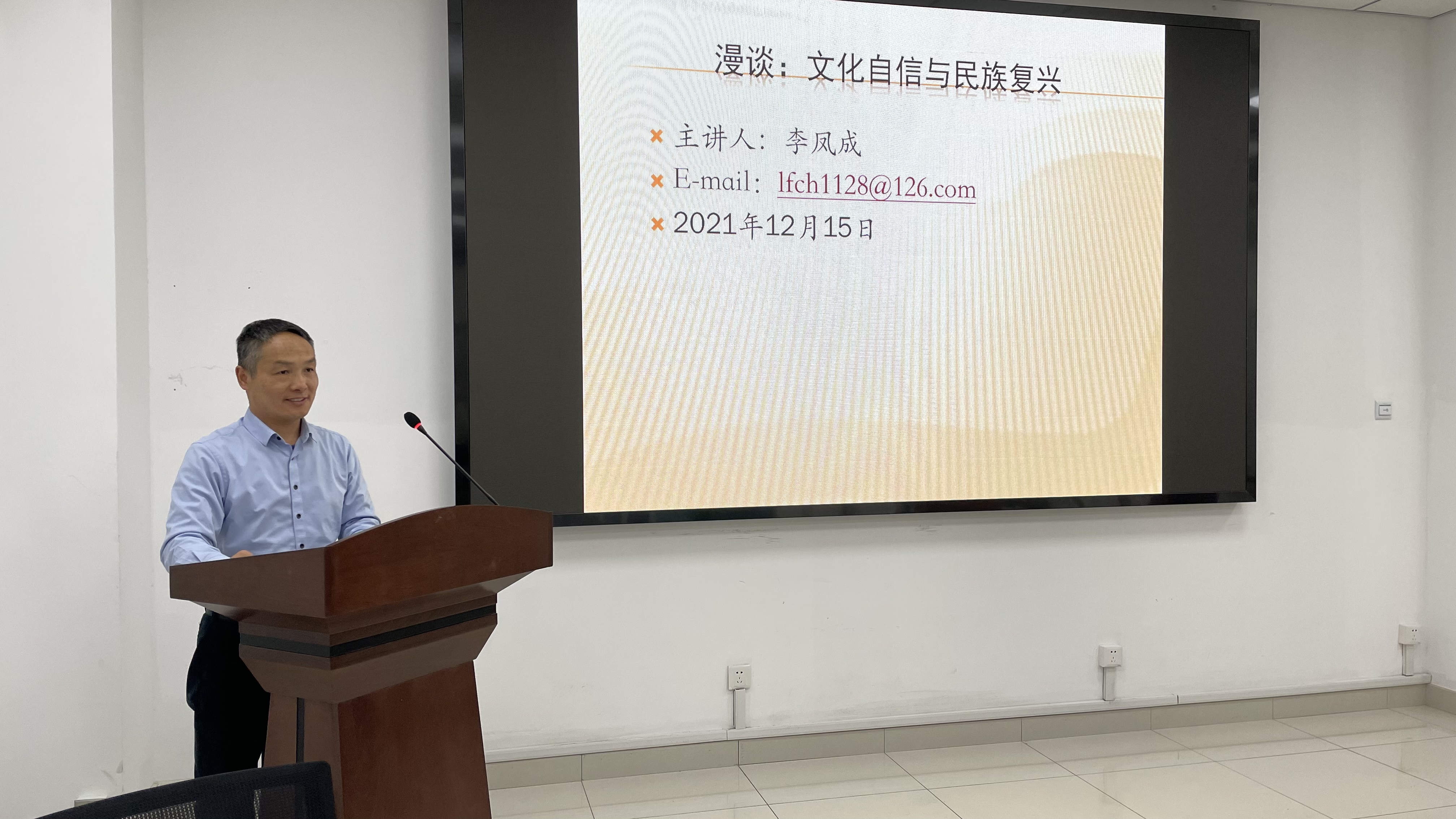 12月15日,太阳成城集团tyc234cc古天乐邀请马克思主义公司中国近现代史教研室主任李凤成为辅导员讲授“文化自信与民族复兴——党的十九届六中全会精神学习”为主题的讲座,公司全体学工干部参加了活动。
