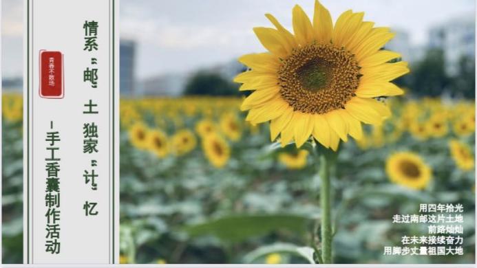 6月5日,“情系邮土,独家计忆”毕业班手工香囊制作活动于在仙林校区开展,重走校园,挖去一抔泥土汇聚一起。习近平总书记曾说,脚下沾有多少泥土,心中就沉淀多少真情。同学们将泥土、种子、寄语放入袋子,寄托对母校不舍和到祖国需要的地方建功立业的期望。