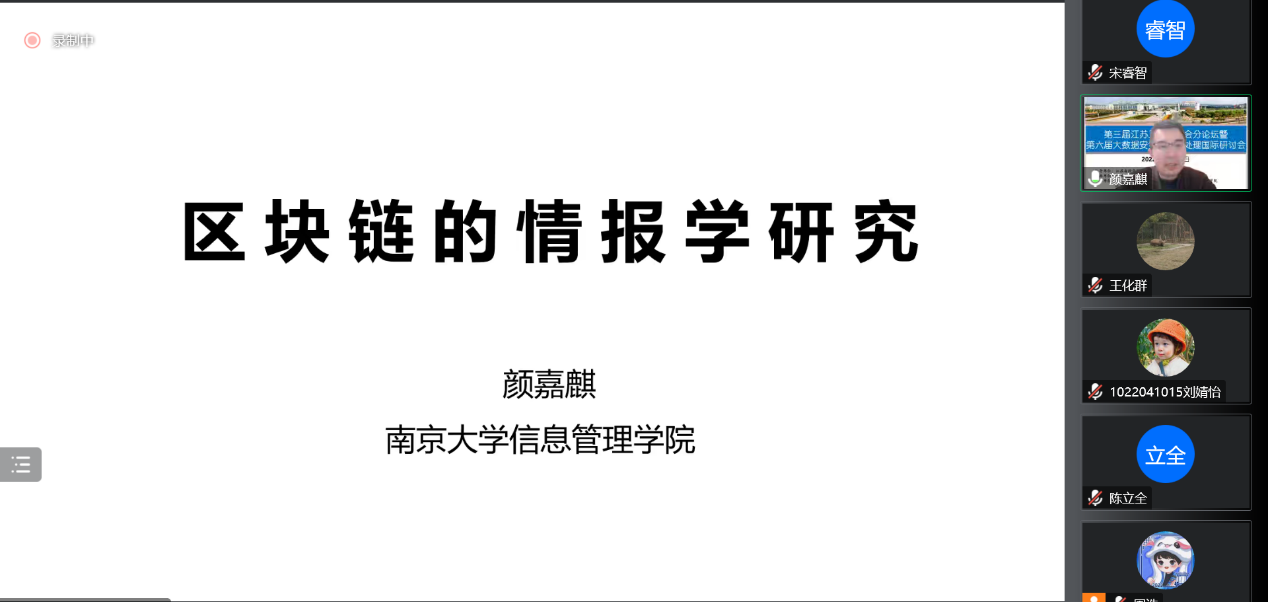 来自南京大学的颜嘉麒教授作了题为《区块链的情报学研究》的主题报告,首先介绍区块链的情报学领域研究内涵,然后围绕区块链信息进行获取和选择、多维加工、深度提炼和分析等方面展开论述,最后介绍了相关研究成果。