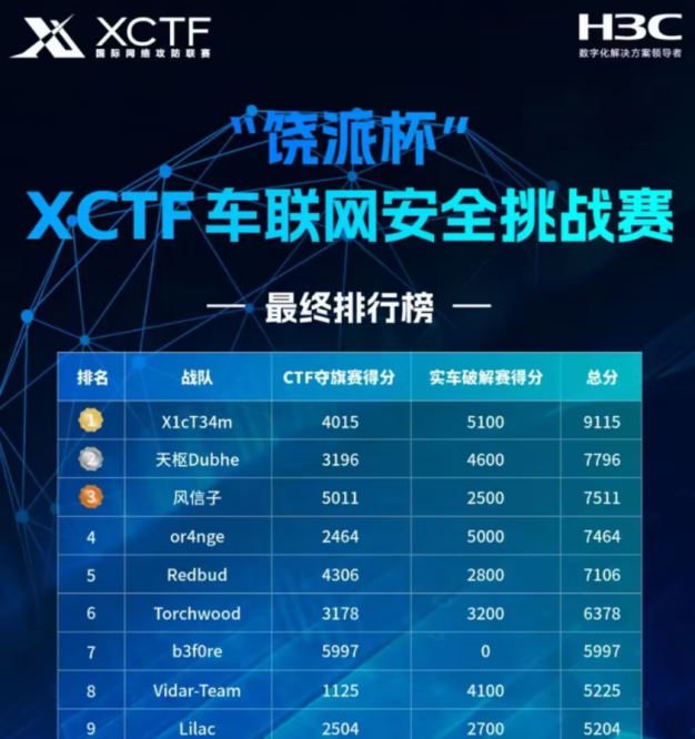 “饶派杯”XCTF车联网安全挑战赛由江西省委网信办、江西省工信厅、上饶市人民政府主办。来自国内外知名高校、自动驾驶汽车企业和科研院所的21支知名战队齐聚上饶,聚焦车联网安全行业的典型漏洞及风险,面向车联网技术创新前沿和产业应用领域,开展车联网安全技术大比拼。