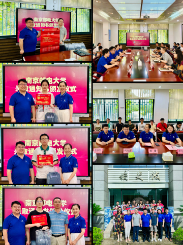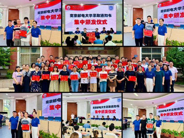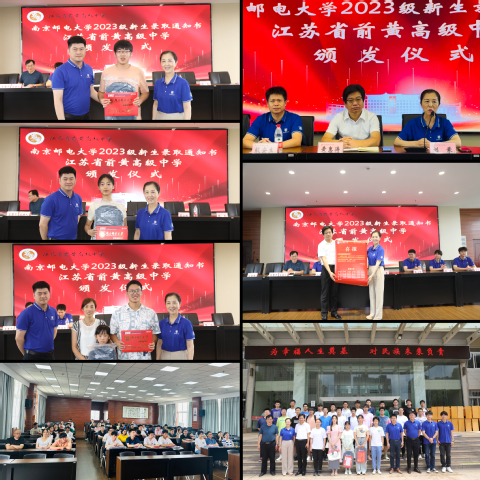 近日,公司常州招生宣传组先后前往江苏省溧阳中学、江苏省常州高级中学、常州市北郊高级中学、江苏省前黄高级中学为2023级本科新生颁发录取通知书。四所南邮优质生源基地中学的校领导、高三年级主任、被公司录取的114名新生及家长代表参加了颁发仪式。公司研究生工作部部长何海洋,公司党委书记刘蒙,党委副书记、副经理王小露,专职纪检委员殷安生,波特兰公司经理助理陈小柏及常州招生宣传组部分教师代表参与了本次活动。