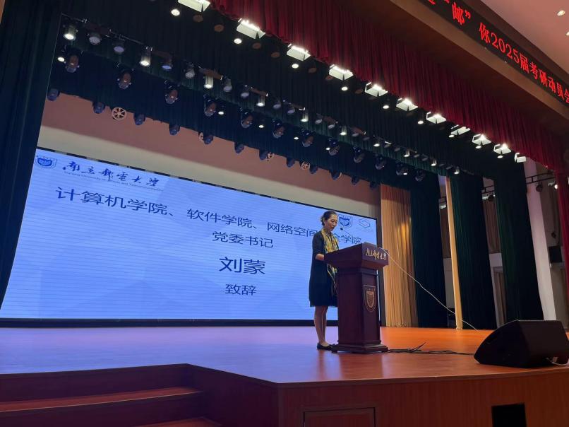 会上,刘蒙书记作考研动员,向2021级的同学们吹响考研号角,她提出考研是人生中一个重要的阶段,并从自身发展需要、思维方式、就业三个层面来向同学们阐述了考研的意义,并告诉同学们考研不仅仅是知识的学习,更是意志的磨砺和思维的拓展。她希望同学们结合自身情况选择目标院校,明确自己的目标和方向,坚定信心,要相信团结和互助的力量,不断提高自己的实力和能力,创造属于自己的辉煌。