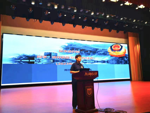 南京市公安局内保支队首席反诈专家陈红燕警官也展开了有关防范电信诈骗的演讲。陈警官首先从电信诈骗的定义出发,展示了电信网络诈骗的犯罪架构,以幽默风趣的口吻生动形象地展示了随着技术发展而产生的各种新型诈骗手段。