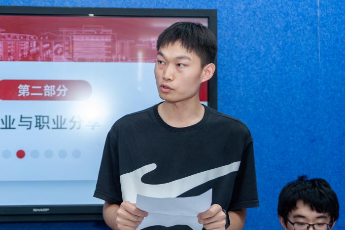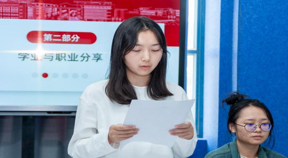 班长袁张诚同学首先回顾了上一次郭书记对班级的关心指导和殷切期望。接着向领导、老师和同学们介绍了班级这两年来的基本情况,着重介绍了班级同学登顶各类国家级竞赛舞台,先后获得国家级奖项15项、省级奖项16项、校级奖项56项。最后祝愿同学们创造属于自己的璀璨未来。