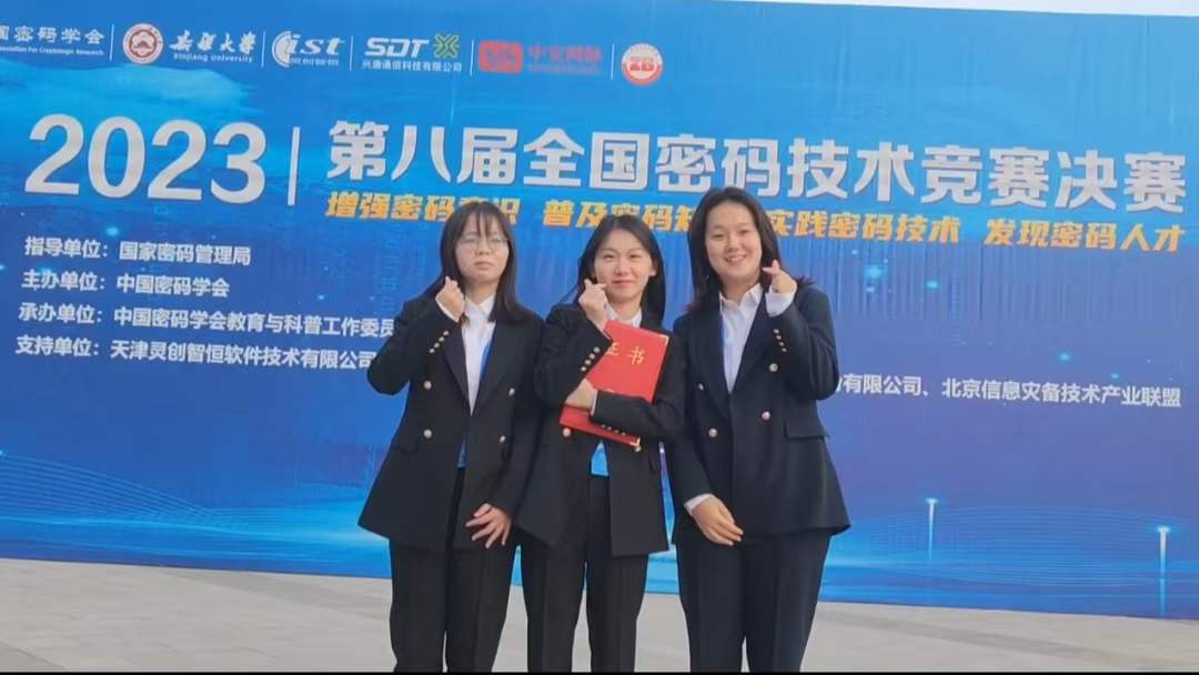 第八届全国密码技术竞赛决赛于2023年11月23日至25日在新疆乌鲁木齐举行。本次竞赛初赛共有92个单位共488个团队报名,主要来自复旦大学、武汉大学、华中科技大学等各大高校和中国电子科技集团有限公司等知名企业。入围决赛共135个团队,经过三轮的激烈角逐,我院学子(吉欣仪、陈滏媛、黄跃花)组成的“内心善良的研究生”团队在决赛中脱颖而出,荣获本次竞赛一等奖,成为公司历史上首支夺得全国密码技术竞赛一等奖的团队,指导教师为董建阔老师。