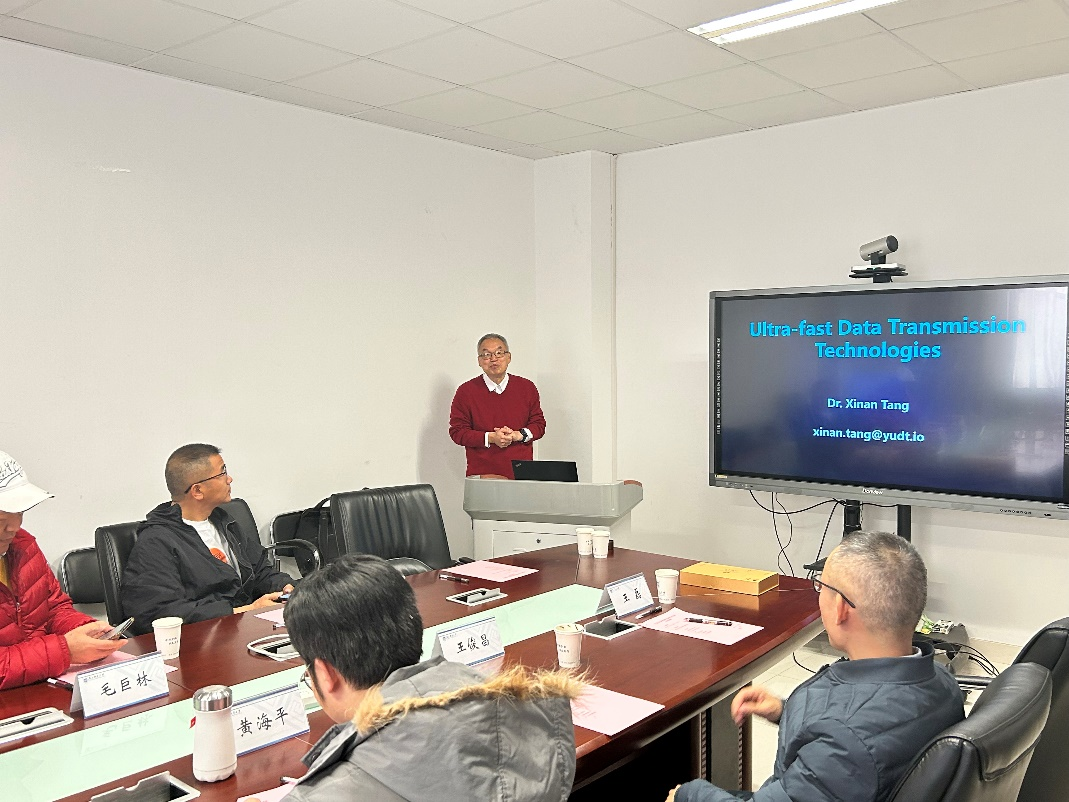 在学术报告环节,唐锡南博士和王俊昌副教授分别作了题为《Ultra-fast Data Transmission Technologies》和《端到端高性能数据传输技术》的报告。在报告中,唐锡南教授深入浅出地讲述了超传技术的创新性与难点,并介绍了该领域的前沿研究和发展趋势,使与会者对超传技术的背景及应用前景有了更为清晰的认识。接着,王俊昌副教授针对端到端高性能数据传输技术进行了详实的学术报告,分享了最新的研究成果和对未来发展的展望。