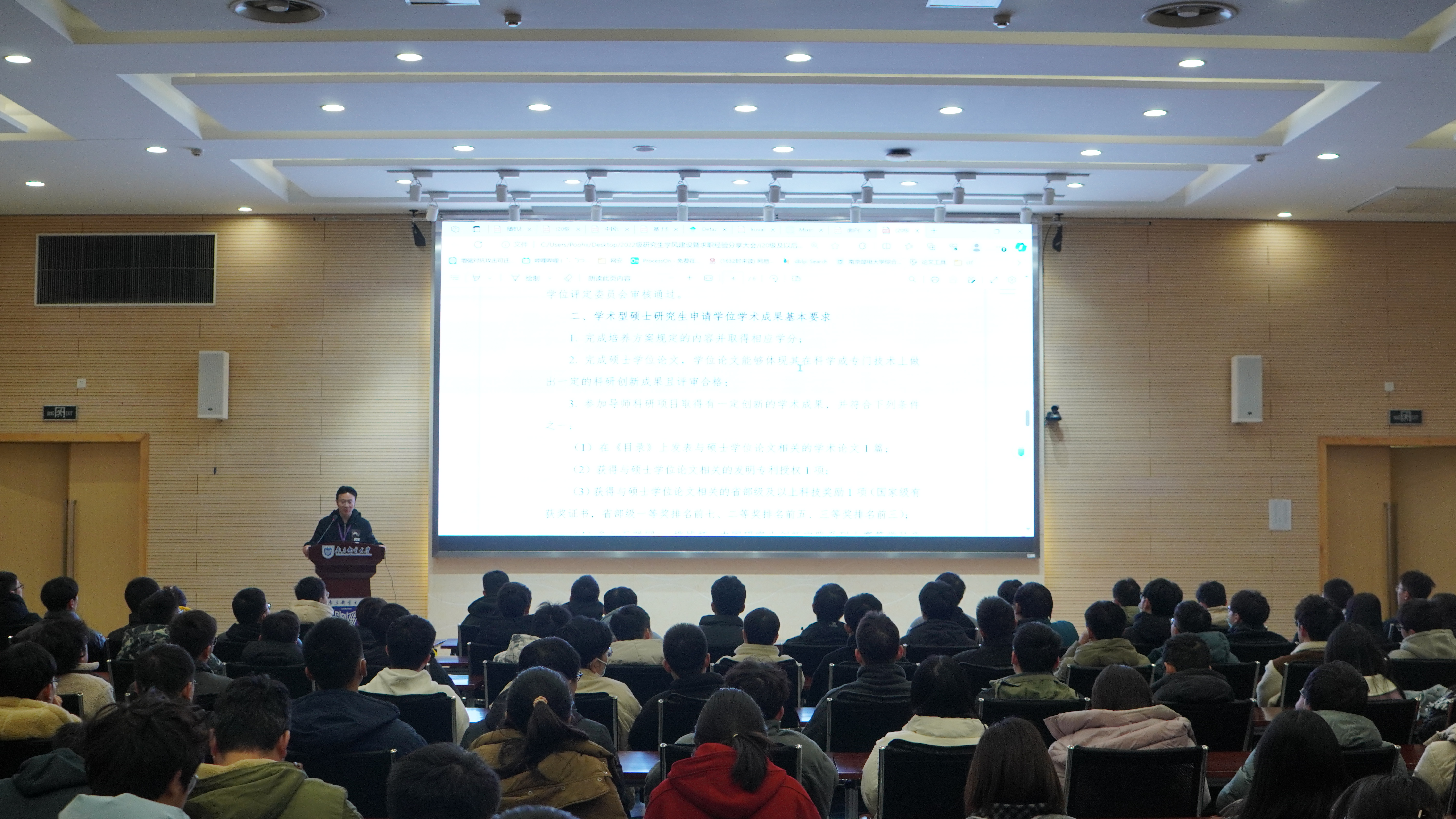 会议由研究生辅导员宋文秀、董西飞两位老师共同主持,尽管天气转凉,寒意袭人,但并未减弱同学们的参会热情,现场座无虚席,大家全神贯注,会后纷纷表示这是一次收获满满的分享会、学习会、交流会,有助于做好研究生生涯下半阶段的规划。