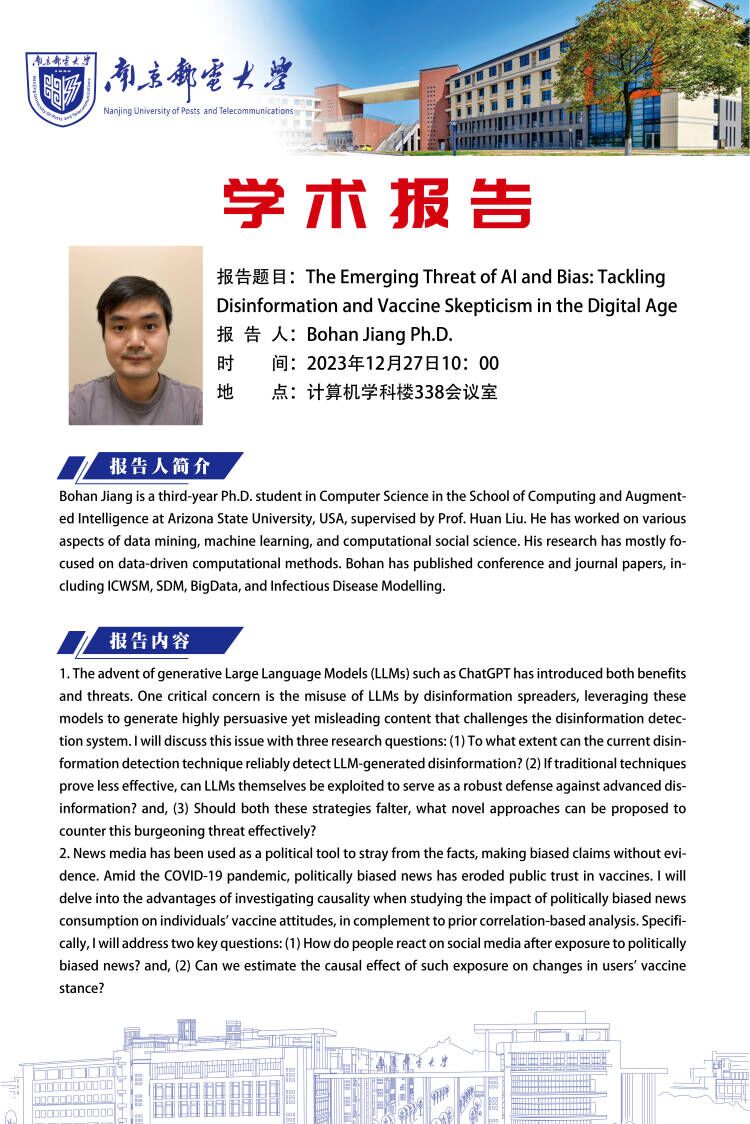 2023年12月27日学术报告——Bohan Jiang Ph.D.