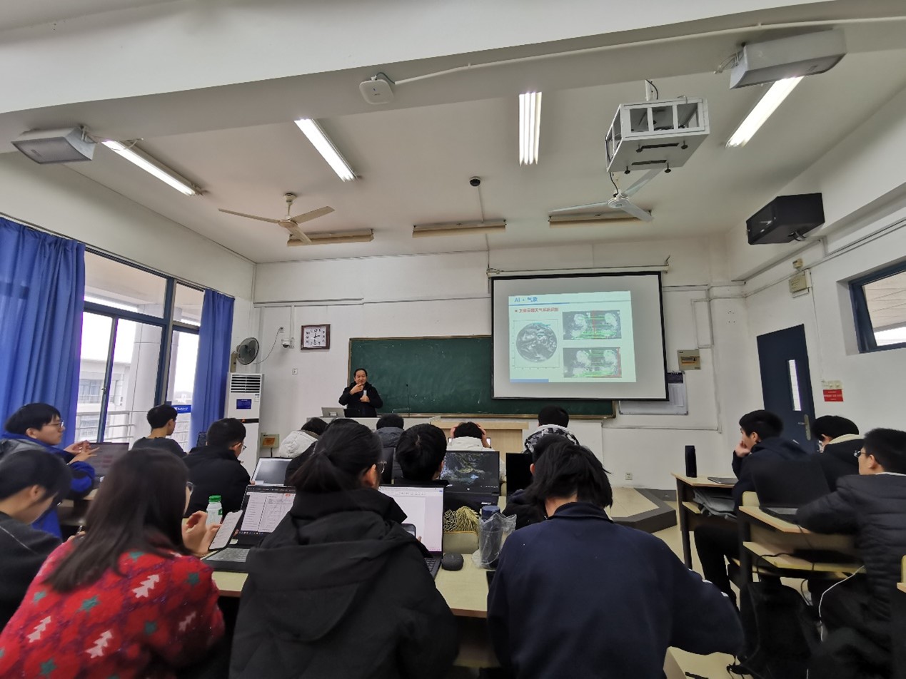之后,刘教授还从基础知识、技能储备、学习内容、前沿技术等方面对同学们提出了建设性提议,这对于暂未接触过相关领域知识和一直对人工智能感兴趣的同学来说是极具帮助和引领作用的。最后,刘教授也以今年极端天气频发这一异常现象为例子,着重介绍了“AI+遥感卫星图像分析”的研究,期望未来同学们能学有所成,更好的借助AI通过分析卫星云图识别天气系统的生成,借此预测热带气旋的移动路径和发展趋势,因为这对预防气象灾害,挽救人民生命财产安全有极大利用价值。
