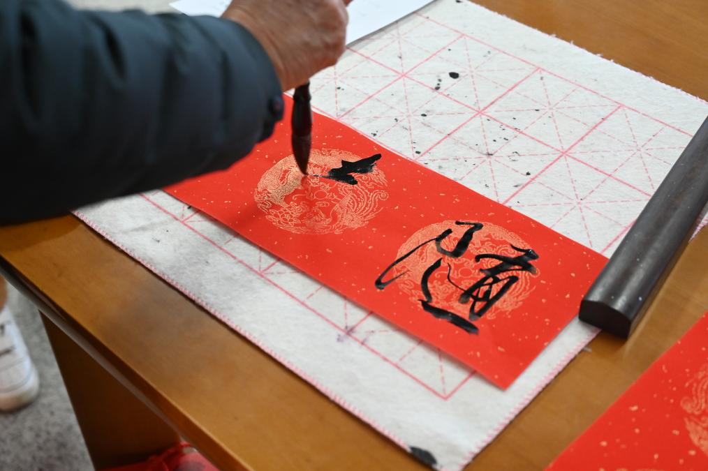 春节将近,分工会邀请关工委老教师,为大家写对联,拓福字,教职工们热情高涨,纷纷参与进来。