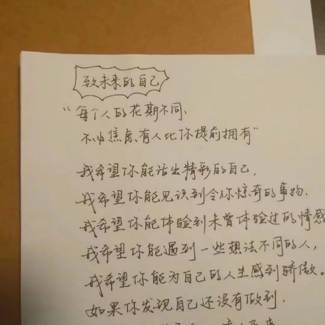 如果真的可以和未来的自己对话,你会说些什么呢?研二的我们还有一年就要迎来毕业的关键时刻,此次团日活动大家给一年后的自己写下一封信。在给未来的自己写信活动中,同学们表达了对未来的期许和祝福,同时也是对自己当前努力的一种激励。大家不仅对一年后的自己提出了期望,也反思了目前所处的阶段,认识到了持续努力的重要性。