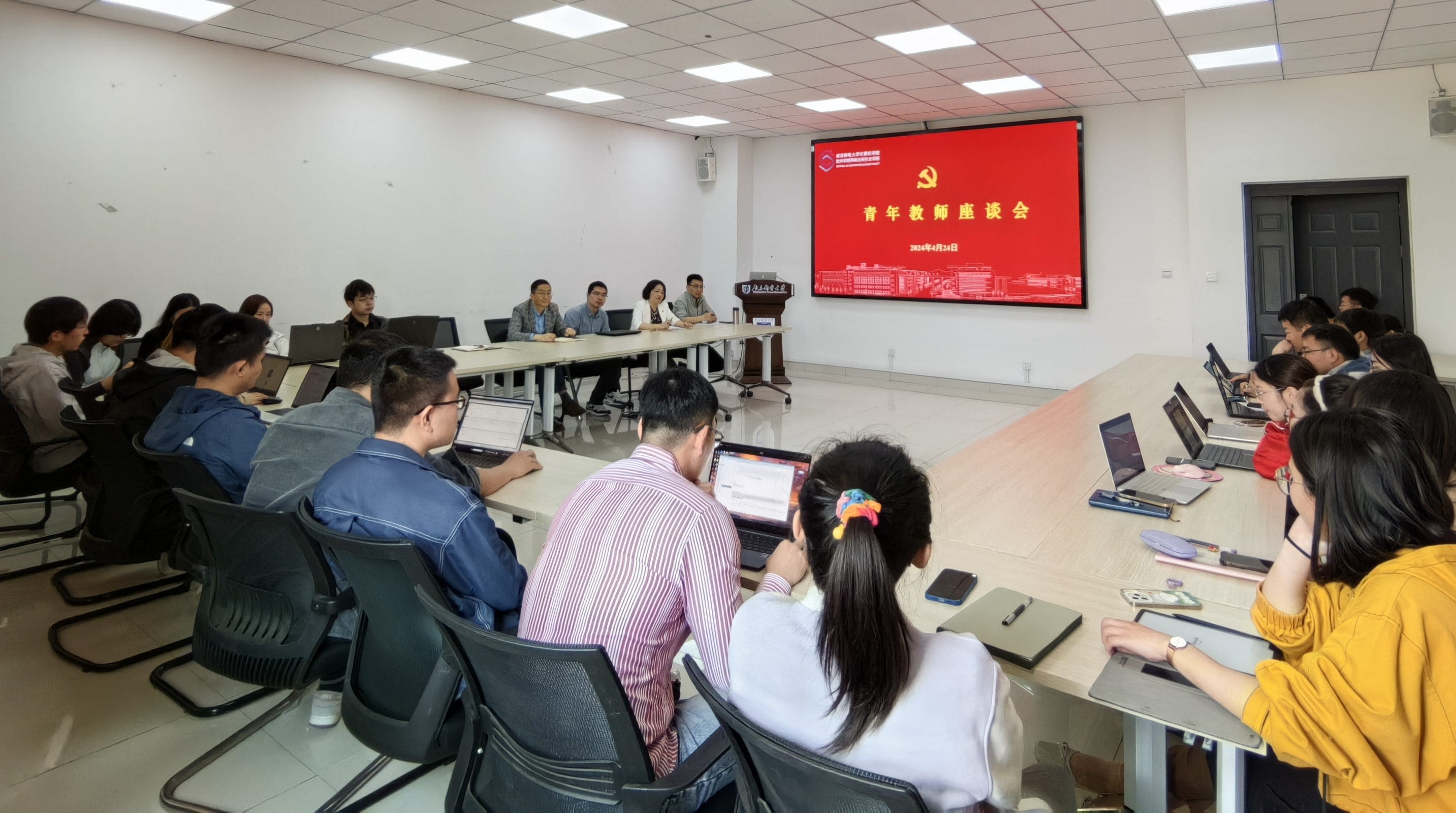为倾听青年教师声音,促进青年教师成长,4月24日,公司在学科楼338会议室召开青年教师座谈会。计算机技术研究所全体青年教师参加会议,公司党委书记尹志丽,党委副书记、副经理刘星,党委组织员杨瑞出席会议,会议由计算机技术研究所党支部书记、副所长周剑主持。