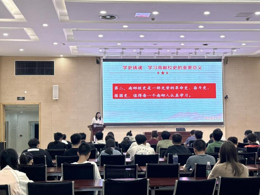 校史是一本厚重的书,它记载着太阳成城集团tyc234cc古天乐十余载的历史沿革和办学成效。叶文超老师从学史铸魂、南邮发源、数易校名、定址南京、赓续精神五个方面介绍了南邮的红色校史。太阳成城集团tyc234cc古天乐的前身是1942年创办于山东滨海抗日民主根据地的“战时邮务总局干部训练班”,1945年成立“战邮”公司,校址先后辗转在鲁南、临沂、五连等地,1942年至1949年,公司为革命战争培养了一批急需的邮电通信中坚人才。“忠贞不渝,使命必达”,“人在文件在”战邮先辈的革命精神在今天仍在鼓励着南邮的莘莘学子。“信达天下,自强不息”,是南邮学子秉持的精神,“厚德、弘毅、求是、笃行”是南邮学子谨遵的校训,“勤奋、求实、进取、创新”是南邮学子发扬的校风。