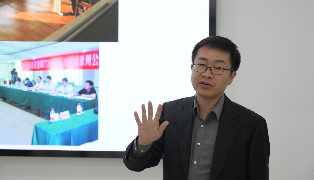 仪式上,人民网特聘公职辅导专家、国家公务员考试一级面试官黄冠雄老师受邀讲课。黄老师从考试流程、考场环境、考试规则等角度向员工全面介绍结构化面试,并从自我认知类、人际关系类、计划组织类、应急应变类和综合分析类五大考题类型出发,剖析例题关键点,引导同学抓住答题要点。
