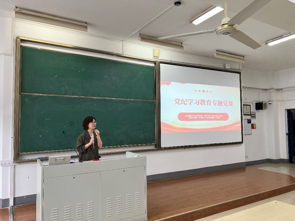 活动伊始,研究生辅导员、研2022级第一党支部书记董西飞老师首先带领大家深入学习了《条例》第六章“对违反政治纪律行为的处分”相关内容,她结合实例,详细解读了各项规定,强调了遵守党纪的重要性,并勉励大家要时刻以高标准、严要求约束自己,不断提升党性修养。