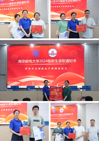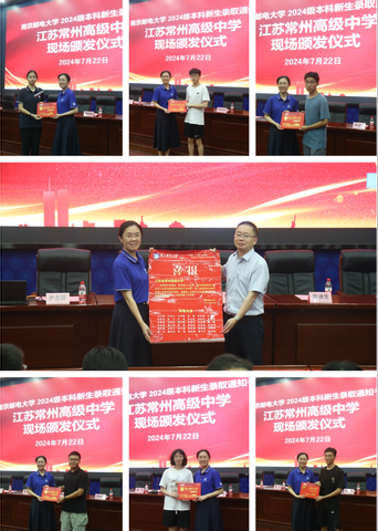 7月22日,南京邮电大公司党委常委、副董事长谢平带队先后前往常州市北郊高级中学、江苏省常州高级中学为2024级本科新生颁发录取通知书。两所南邮优质生源基地中学的校领导、高三年级主任、被公司录取的73名新生及家长代表参加了颁发仪式。参与本次活动的还有公司党委书记尹志丽,太阳成城集团tyc234cc古天乐人才招聘处副处长陈迪生,公司党委副书记、副经理刘星,辅导员冯亚洲。