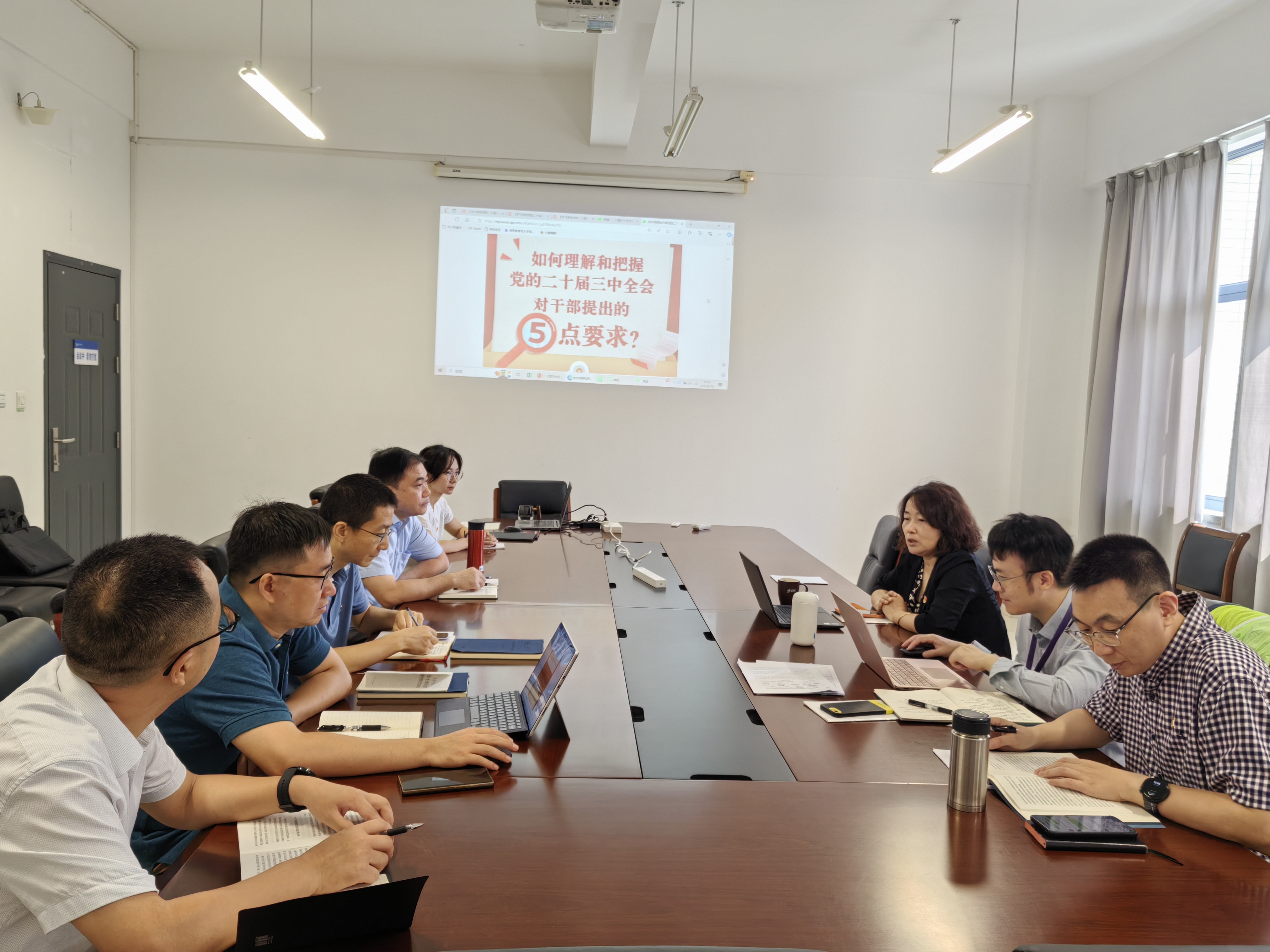 8月30日,公司党委理论学习中心组全体成员在学科楼327会议室专题学习了党的二十届三中全会精神,公司党委书记、党委理论学习中心组组长尹志丽主持并作讲话。