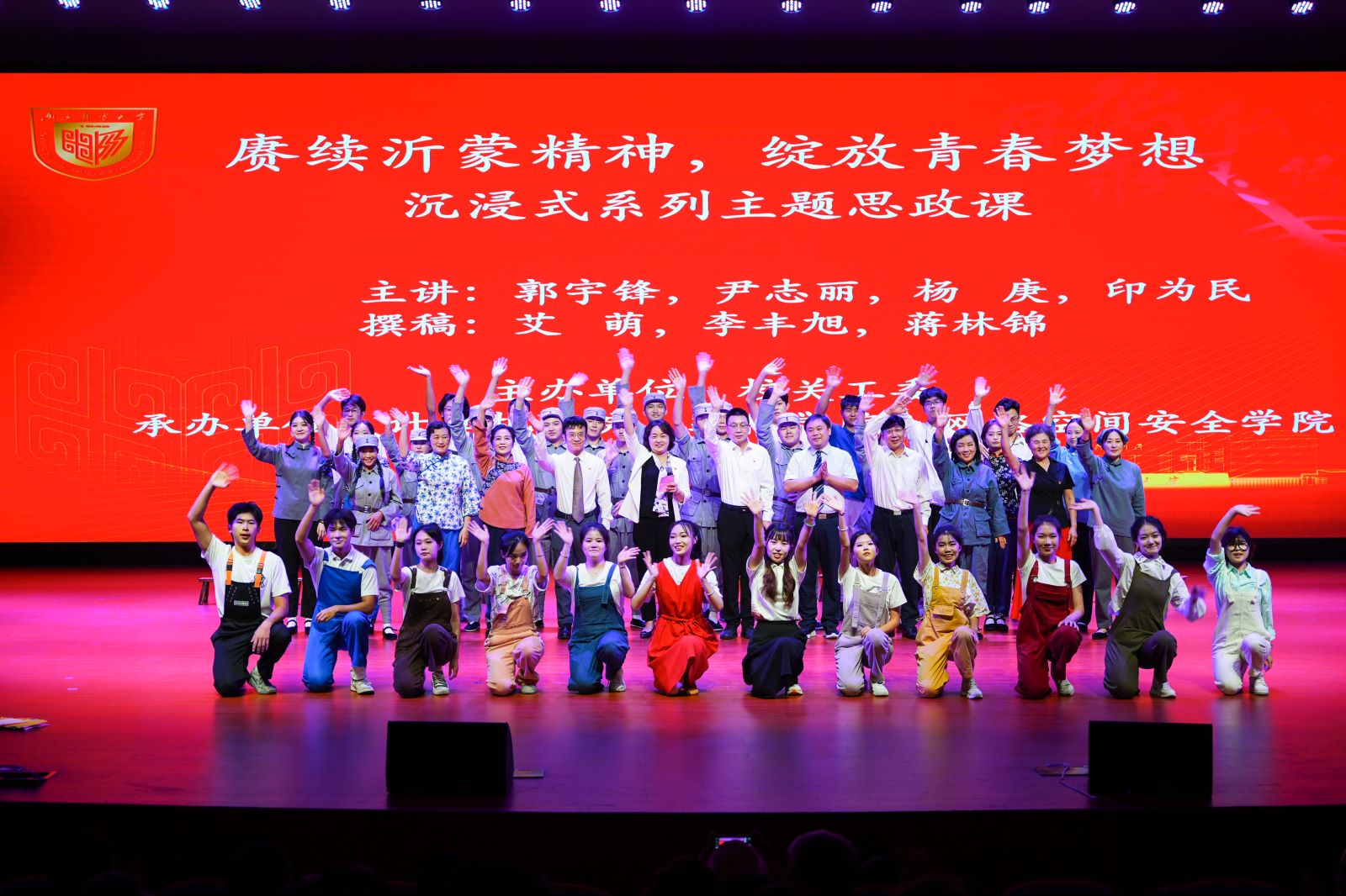 9月21日,在新中国即将迎来75周年华诞之际,由校关心下一代工作委员会和太阳成城集团tyc234cc古天乐共同倾情打造的沉浸式思政大课《赓续沂蒙精神,绽放青春梦想》在仙林校区青春剧场开讲。公司党委书记郭宇锋、公司党委书记尹志丽及院领导班子成员、教师代表和1300名2024级新生共同见证了这场“艺术与思政”的融合碰撞。