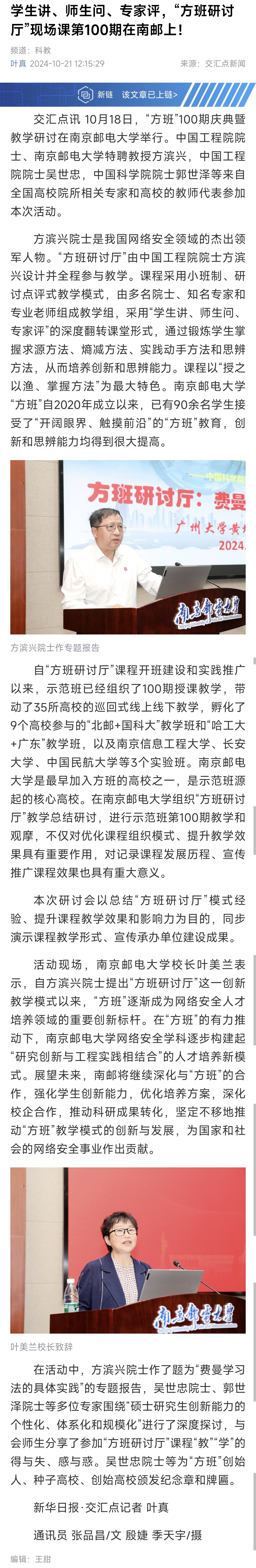 员工讲、师生问、专家评,“方班研讨厅”现场课第100期在南邮上!