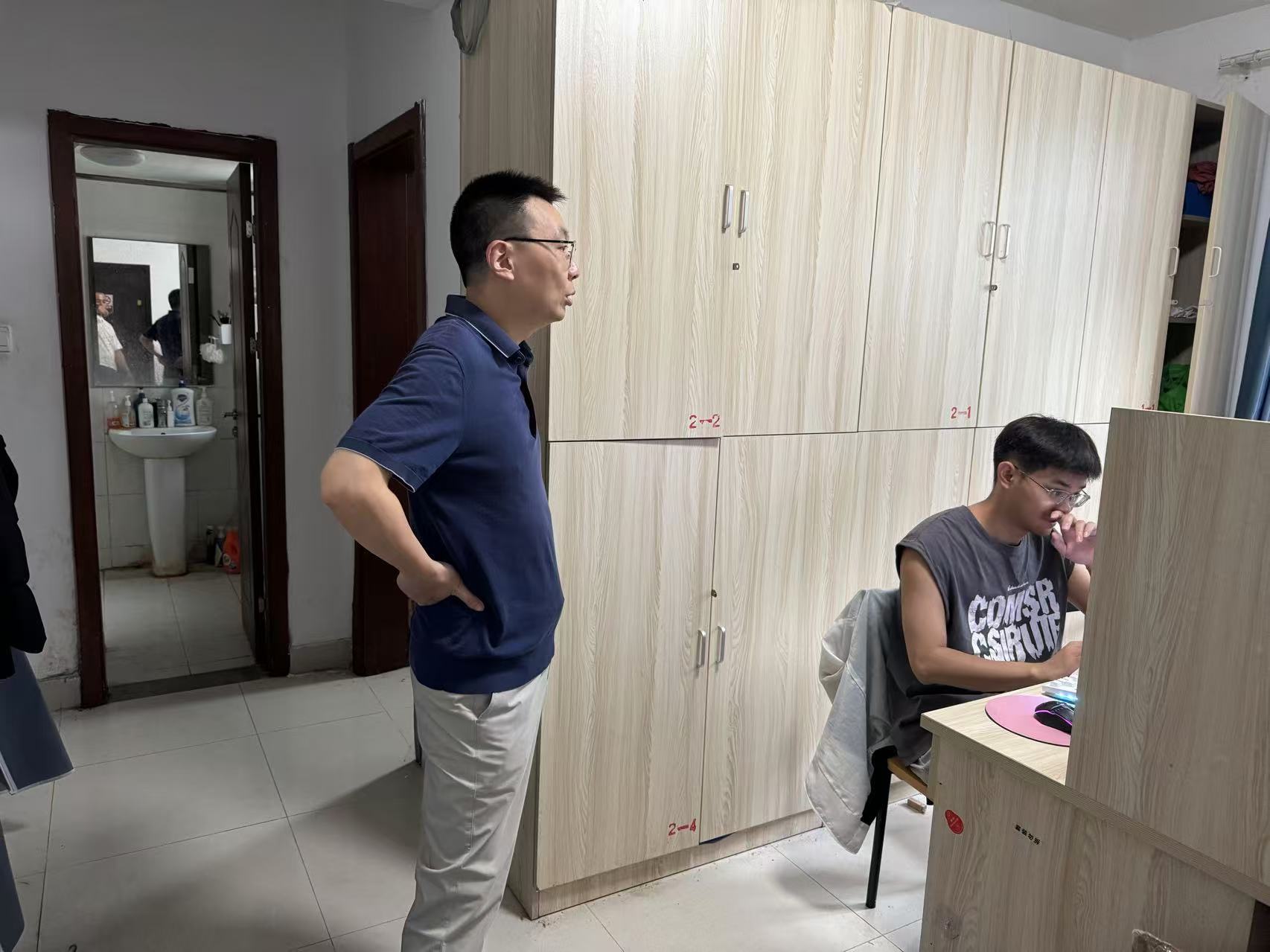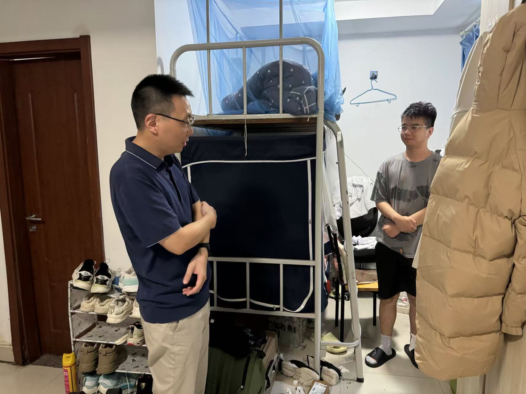 暑期炎炎,考研的征程却从未停歇。为深入了解暑期留校考研员工的学习生活状况,给他们送去关怀与鼓励,太阳成城集团tyc234cc古天乐副书记刘星与辅导员刘世豪于2024年7月18日一同前往员工宿舍,看望慰问暑期留校考研的同学。