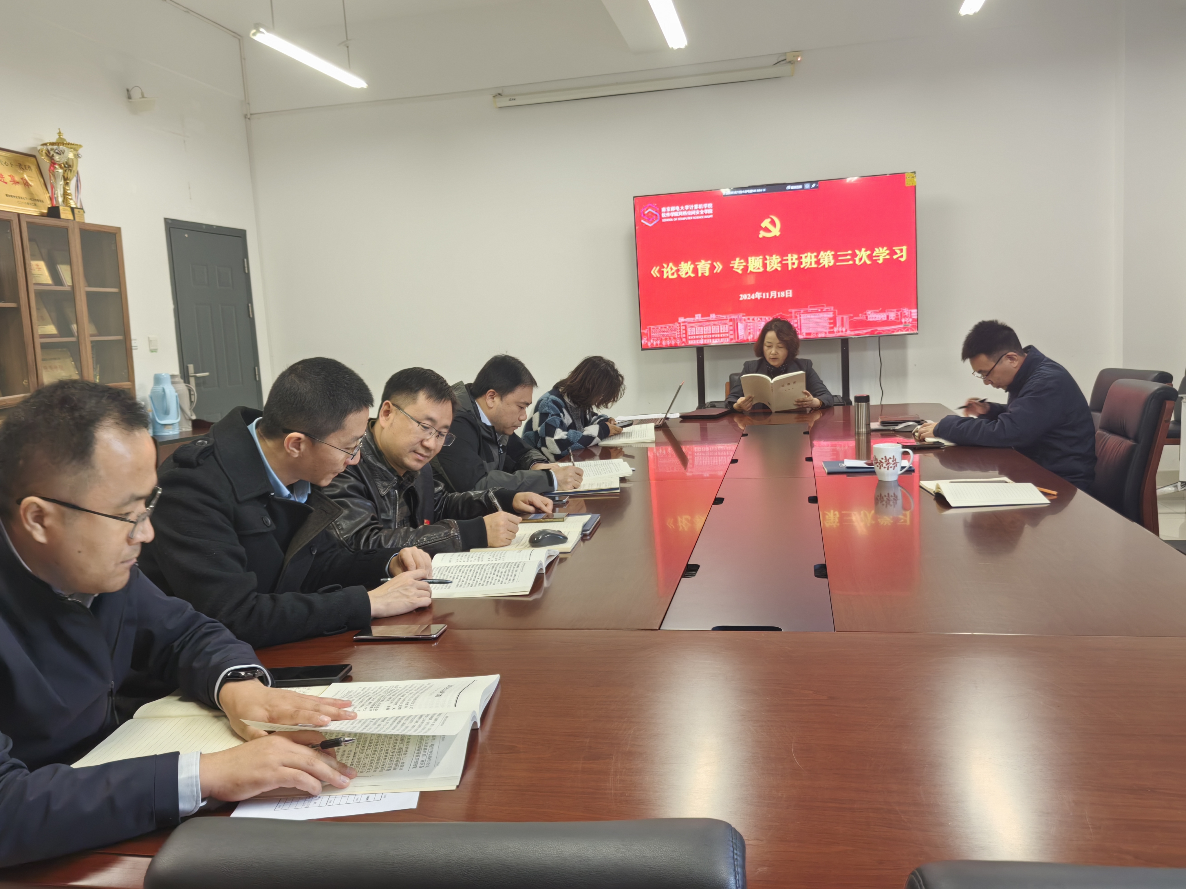 11月18日,公司党委理论学习中心组《论教育》专题读书班在学科楼327会议室开展第三次集中学习。公司党委理论学习中心组全体成员参加,公司党委书记、党委理论学习中心组组长尹志丽同志主持会议并作总结发言。