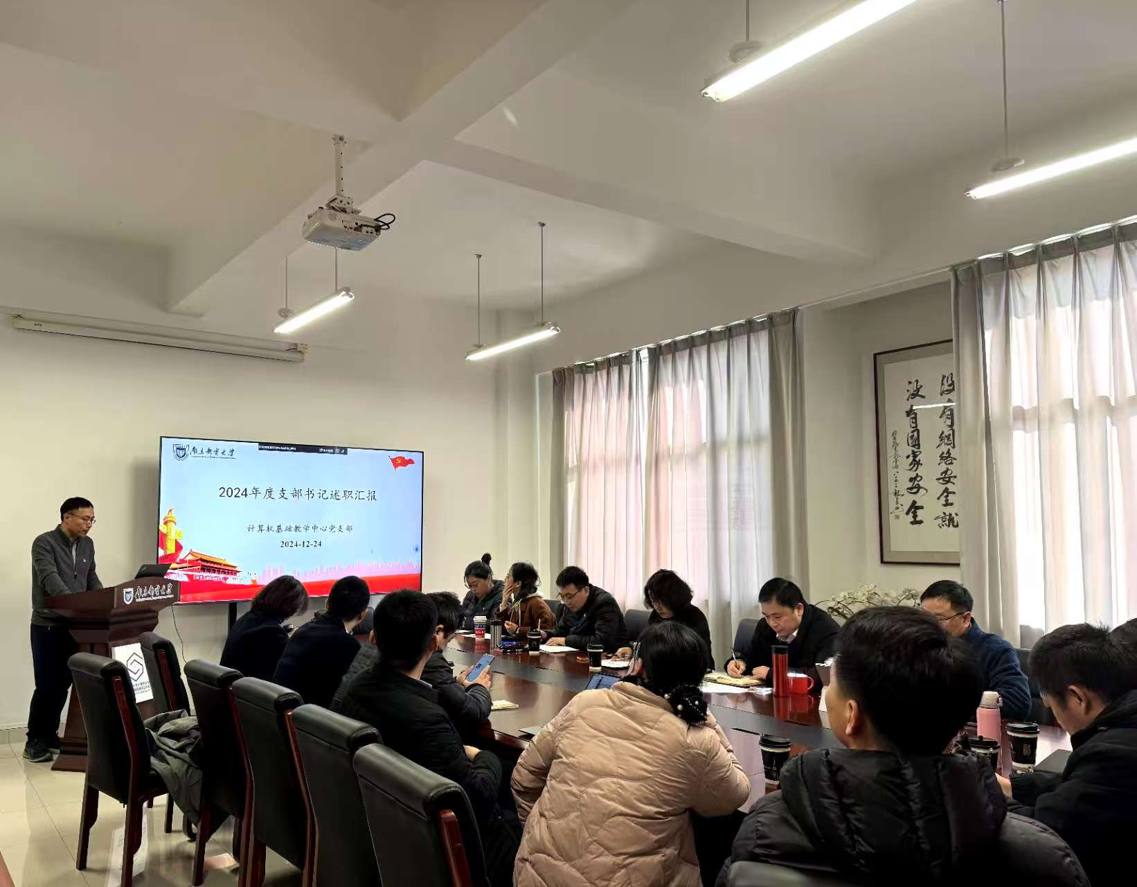 12月24日,太阳成城集团tyc234cc古天乐、软件公司、网络空间安全公司党委在计算机学科楼327会议室召开了2024年度党支部书记抓党建述职评议考核会议。公司党委委员、领导班子成员作为考核工作小组成员参会并担任评委,全体党支部书记进行现场述职,会议由公司党委书记尹志丽主持。