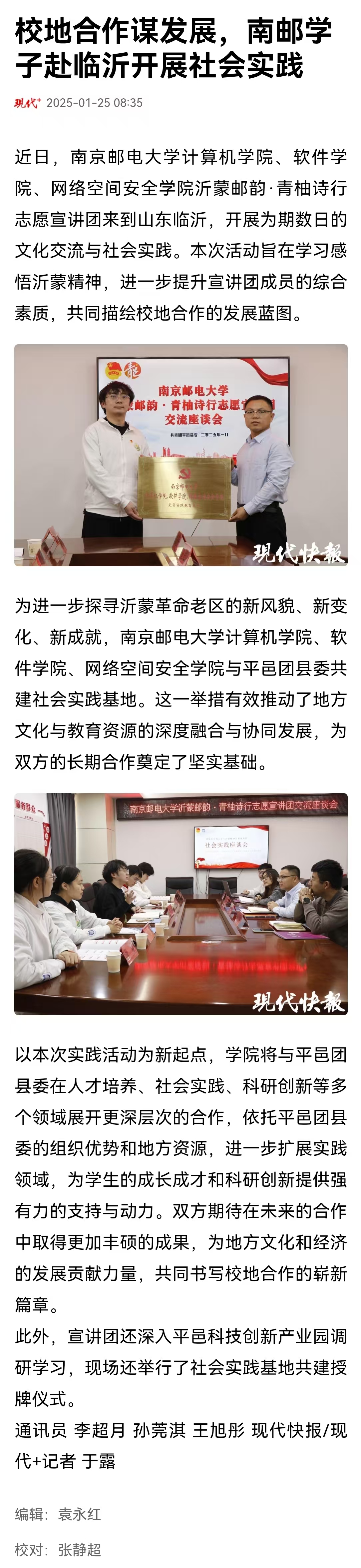 【现代快报客户端】校地合作谋发展,南邮学子赴临沂开展社会实践