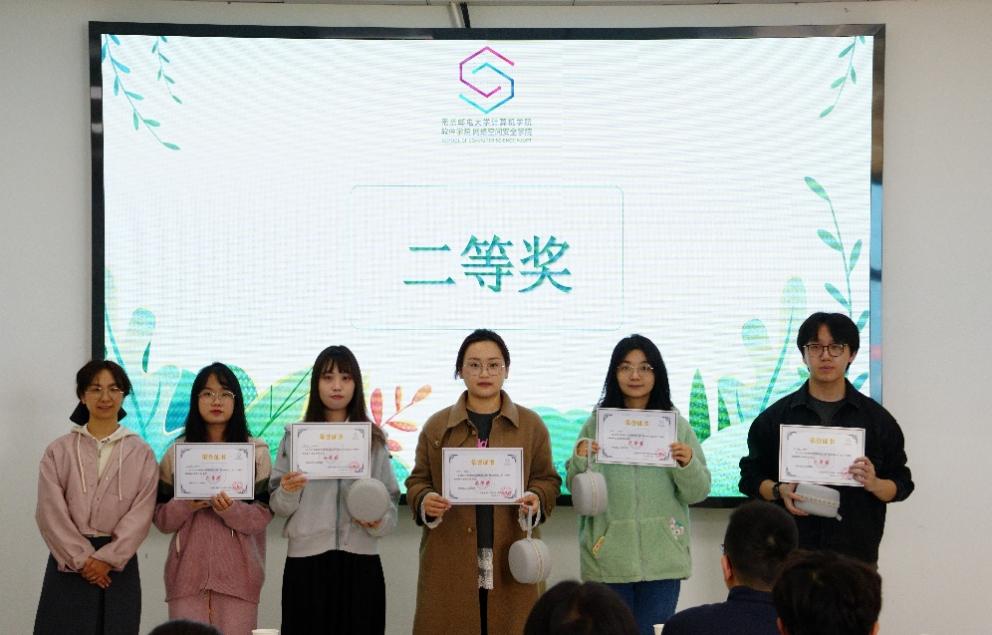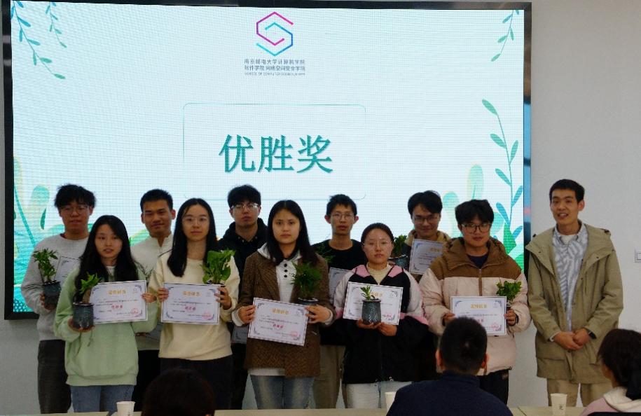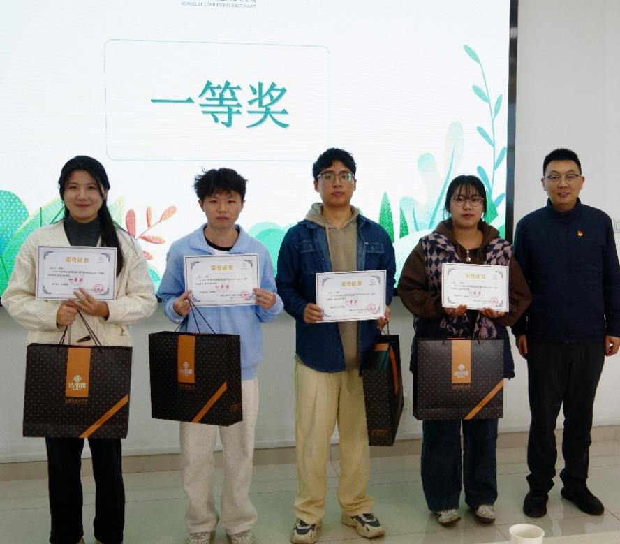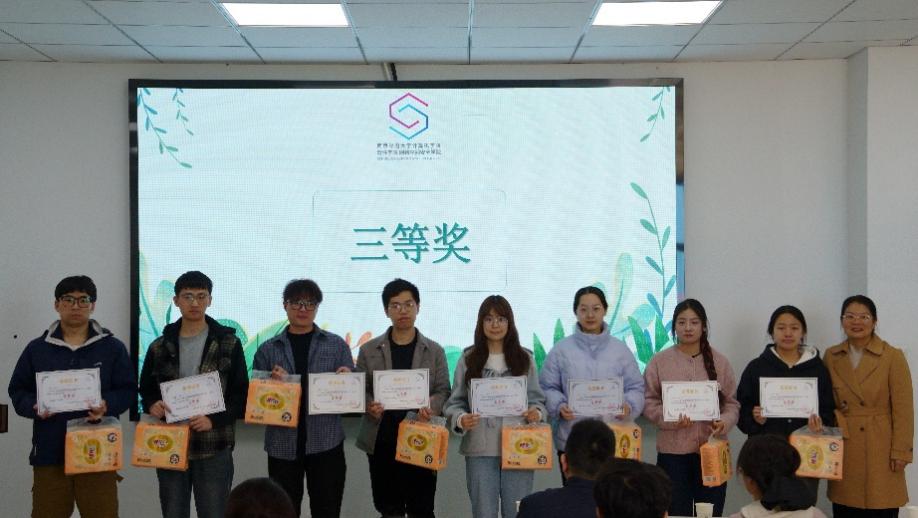 公司党委副书记、副经理刘星,分团委书记葛丹,辅导员老师宋文秀、刘少康向获奖同学颁发奖状和奖品并合影留念。