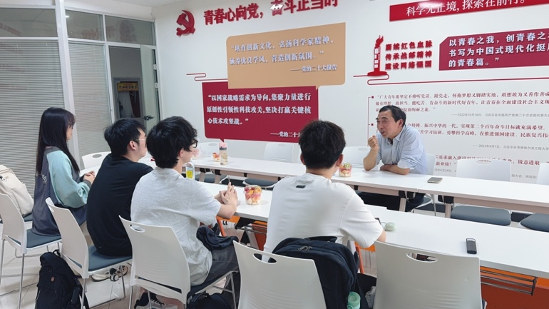 座谈会上,甘宗盛结合自身数十年的教育经历,勉励同学们“立大志、明大德”,在专业学习中夯实基础,在实践探索中锤炼本领。他特别提到:“计算机学科发展日新月异,同学们既要紧跟技术前沿,也要培养终身学习的韧劲。”本科生辅导员韩烁从员工工作角度,针对同学们提出的时间管理、竞赛参与等问题给予具体建议,并介绍了公司生涯规划指导资源。