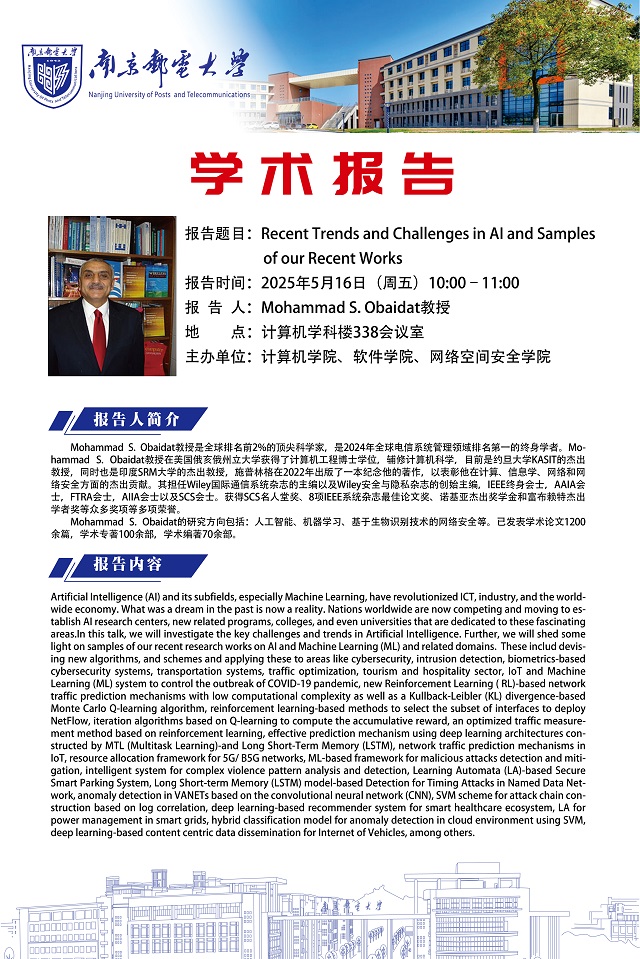 2025年5月16日学术报告——Mohammad S.Obaidat教授