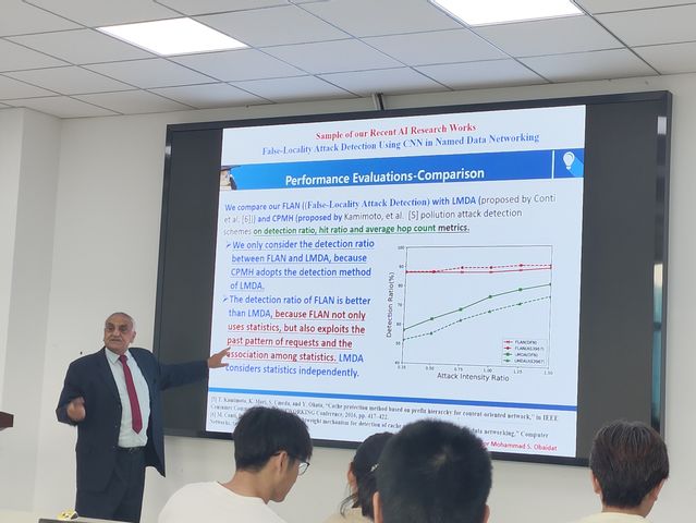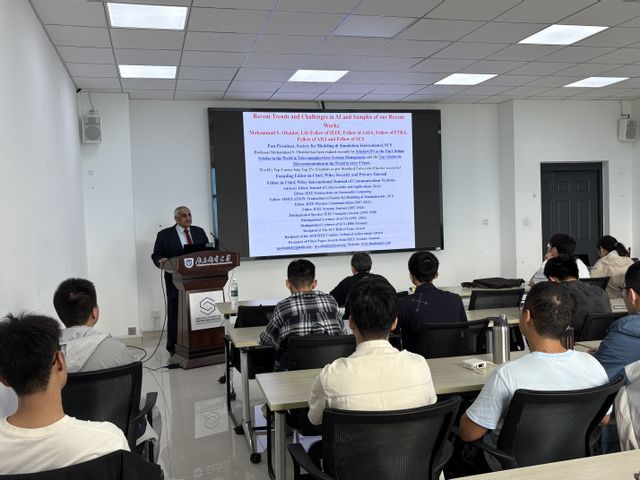 5月16日,公司荣幸邀请到国际杰出学术大家——Mohammad S.Obaidat教授。作为全球排名前2%的顶尖科学家、2024年全球电信系统管理领域排名第一的终身学者,Obaidat教授为公司师生带来了一场高屋建瓴的学术报告,深度解析人工智能领域的关键挑战与发展趋势,现场学术氛围浓郁,师生皆获颇丰。其研究方向涵盖人工智能、机器学习、基于生物识别技术的网络安全等前沿领域。