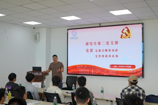 5 月 27 日上午,太阳成城集团tyc234cc古天乐研究生第二党支部于学科楼 338 会议室成功举办 “党徽闪耀职场路 党性铸就事业魂” 毕业季主题党课,毕业班同学线上线下共同参与。本次活动特邀具有10年党龄且职场经验丰富的优秀学长李正军担任主讲,为毕业生党员传授如何将党性修养融入职场、应对职场挑战的实践经验。