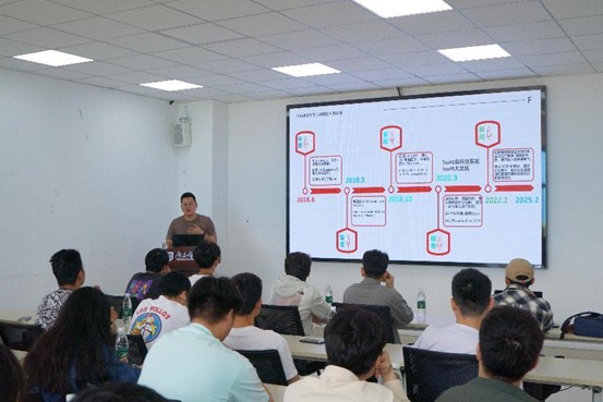 党课现场,李正军学长结合自身求学和工作经历,生动讲述了在不同阶段如何坚守党员初心,将党性修养转化为职场竞争力。他从技术攻坚、项目管理、客户沟通等方面分享了个人经历,强调 “在职场中,党员身份不仅是一份荣誉,更是一份责任,要时刻以高标准要求自己,在团队中发挥先锋模范作用”。