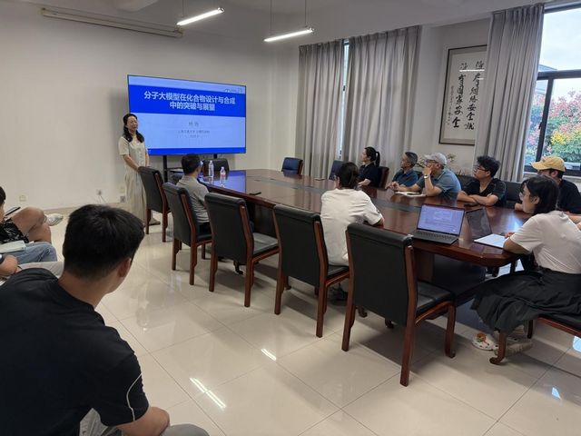 杨旸教授长期从事人工智能与科学领域的交叉研究,重点关注将尖端机器学习和大型语言模型融入生物、化学、材料科学和医学领域的跨学科研究。在此次报告中介绍了分子大模型目前的相关研究工作,分享了在化合物设计与合成等领域分子大模型应用的研究进展与未来展望。报告结束后,杨旸教授与现场师生就大模型应用和生物医药多模态数据等问题进行了深入探讨。