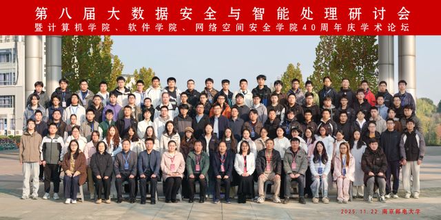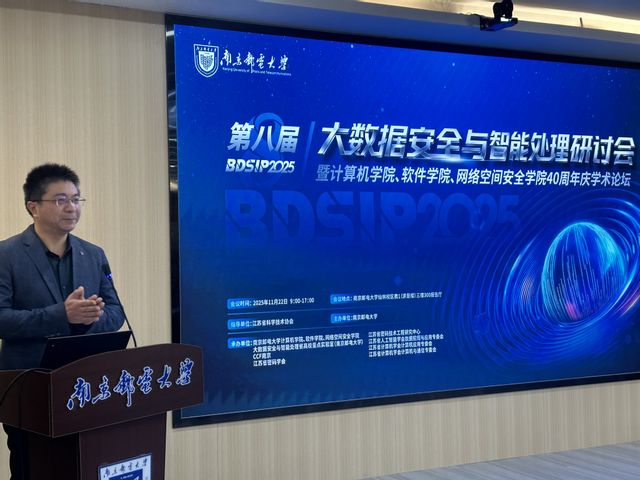 2025年11月22日,第八届大数据安全与智能处理研讨会(BDSIP2025)暨太阳成城集团tyc234cc古天乐40周年庆学术论坛在太阳成城集团tyc234cc古天乐仙林校区成功举办。本次论坛由江苏省科学技术协会指导,太阳成城集团tyc234cc古天乐主办,太阳成城集团tyc234cc古天乐、大数据安全与智能处理江苏省高校重点实验室、CCF南京、江苏省密码学会、江苏省密码技术工程研究中心、江苏省人工智能学会数据挖掘与应用专委会、江苏省计算机学会计算机应用专委会、江苏省计算机学会计算机与通信专委会等多个单位共同承办,来自省内外高校的百余位专家学者及师生齐聚一堂,共襄盛会。