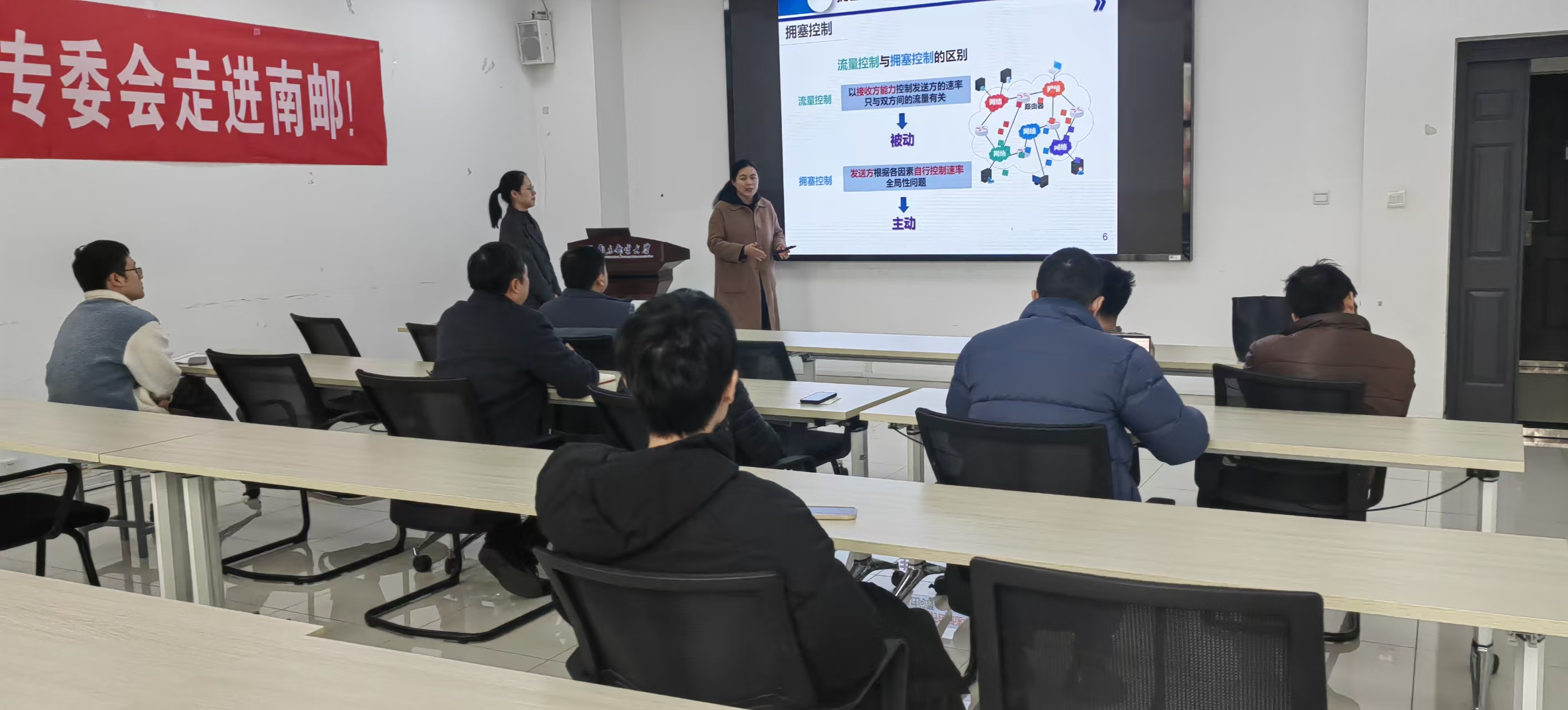 胡素君教授对《拥塞控制》章节进行了授课示范。胡教授的授课张弛有度,内容衔接连贯,课堂教学效果良好。精彩的讲授之后,胡教授还围绕本次讲授的内容和左老师对于如何把一节课的内容讲明白,如何选择上课的课件内容、加强板书和课件内容相结合等方面的经验进行了广泛的交流。