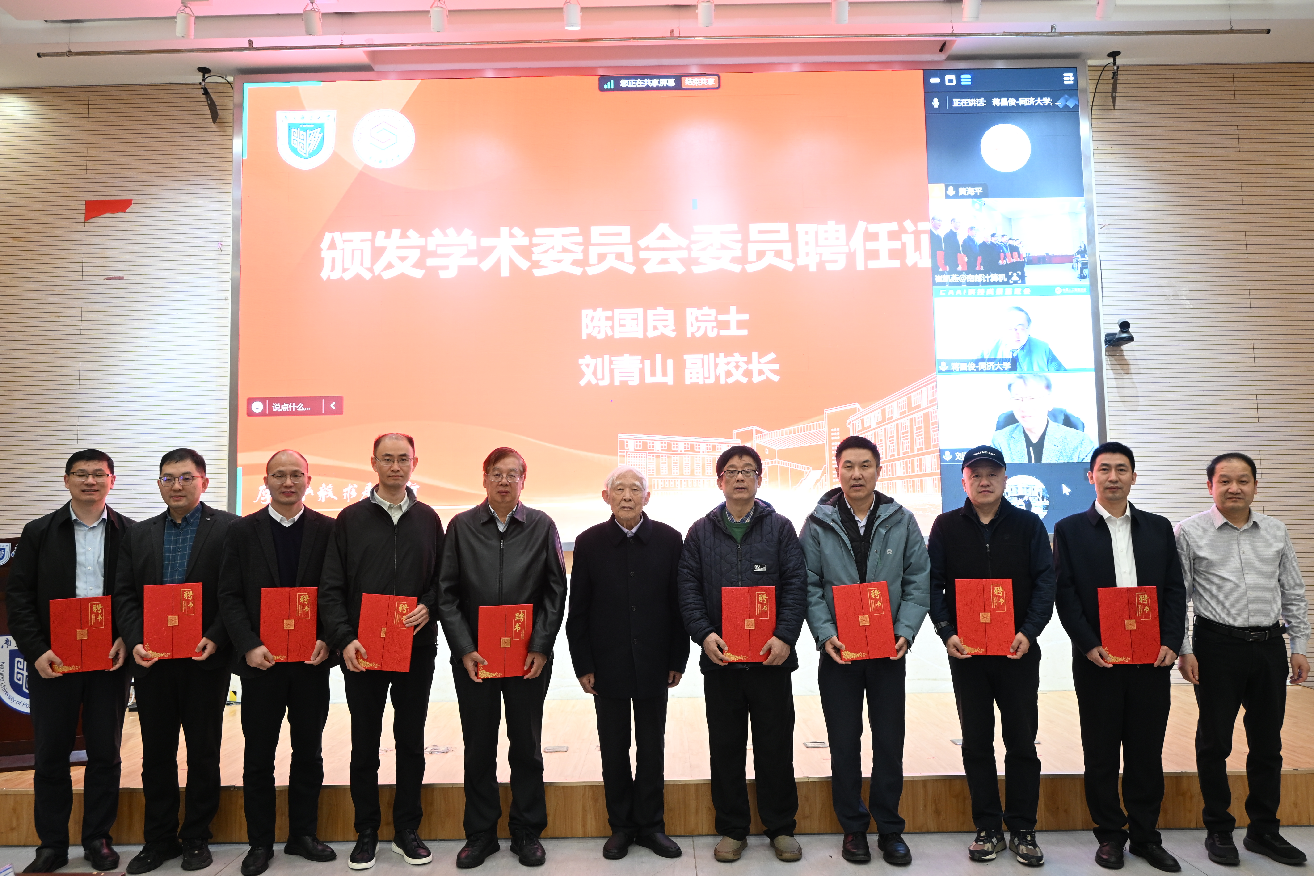 随后,陈国良院士宣读了新一届学术委员会成员名单,明确了委员会的组织架构与职责使命。刘青山副董事长为学术委员会主任陈国良院士颁发聘书;陈国良院士依次为全体学术委员会委员颁发聘书。聘书的颁发,标志着实验室新一届学术委员会正式履职,将为实验室发展提供坚实的学术指导与战略决策支撑,构建起高水平的学术治理体系。