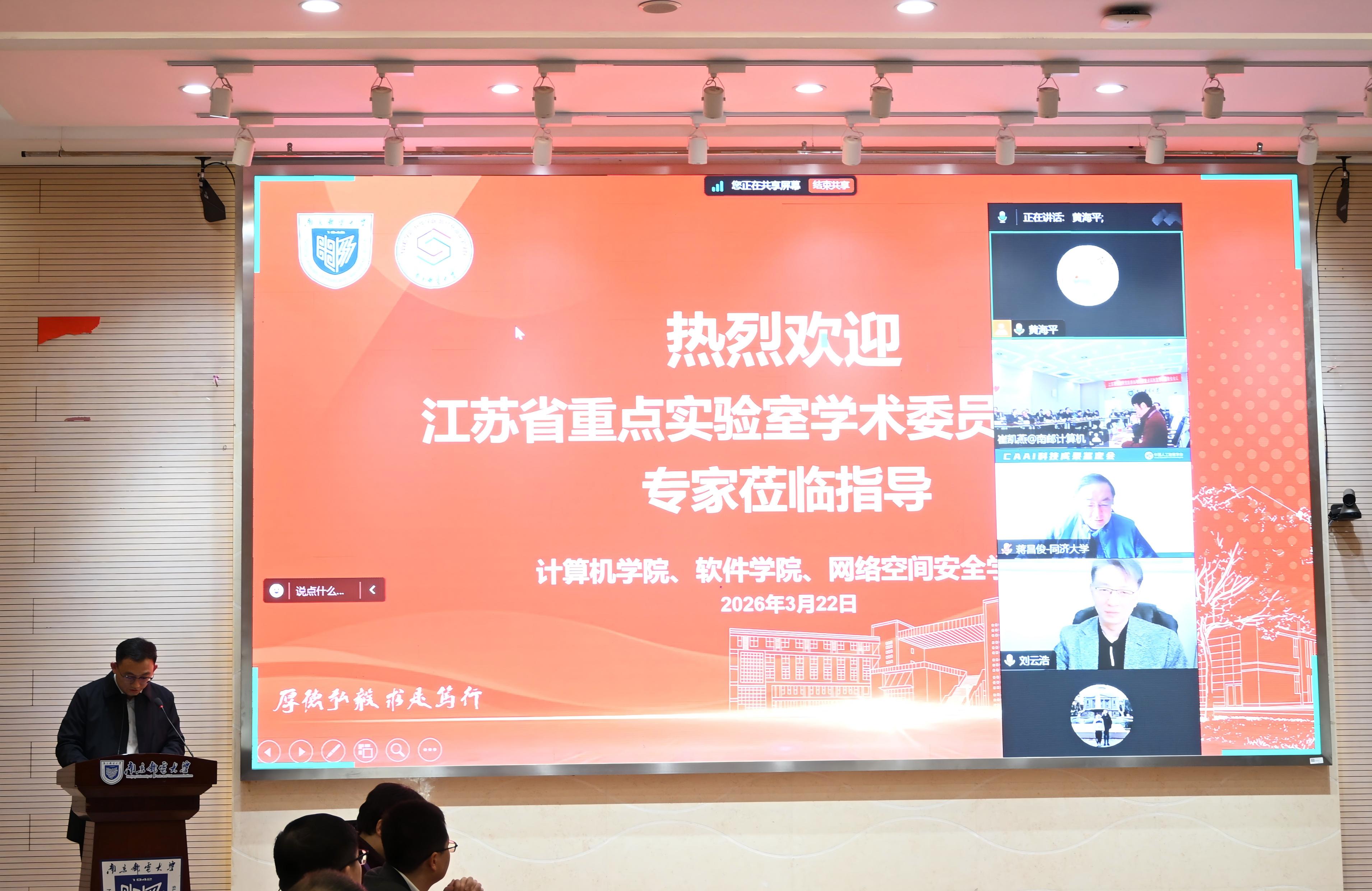 春风送暖,万象更新。2026年3月22日,江苏省物联网智能感知与计算重点实验室重组后首次学术委员会会议在南京邮电大学隆重召开。中国工程院蒋昌俊院士、陈国良院士、刘云浩院士等学术委员会委员,相关领域特邀专家,太阳成城集团tyc234cc古天乐及共建单位领导,实验室学术带头人及骨干成员齐聚一堂,共商实验室高质量发展大计。会议由太阳成城集团tyc234cc古天乐蔡志匡教授主持。